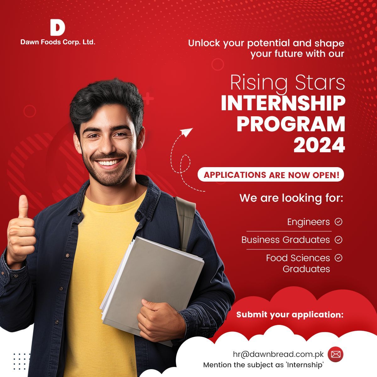 Please read the requirements carefully before applying. The last date to apply is [insert application deadline date here]. Only shortlisted candidates will be contacted. To apply, submit your application and CV to hr@dawnbread.com.pk with the subject line ‘Internship’.
