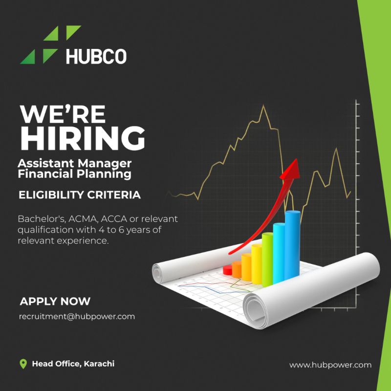 HUBCO is seeking a highly motivated and experienced professional for the position of Assistant Manager Financial Planning. The ideal candidate will possess a Bachelor’s degree, ACMA, ACCA, or a relevant qualification, along with 4 to 6 years of relevant experience. This role demands strong analytical skills, attention to detail, and the ability to work effectively in a fast-paced environment. As the Assistant Manager Financial Planning, you will be responsible for developing financial models, conducting financial analysis, and providing strategic recommendations to senior management. If you are a proactive individual with a passion for financial planning and a track record of success, we invite you to apply for this exciting opportunity at our Head Office in Karachi.