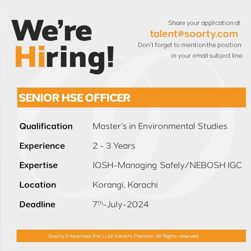 We encourage all applicants to carefully review the job requirements before applying. The deadline for applications is 7th July 2024. Please send your detailed CV to talent@soorty.com, ensuring to mention the position (“Senior HSE Officer”) in the subject line of your email. Only shortlisted candidates will be contacted for further assessment.