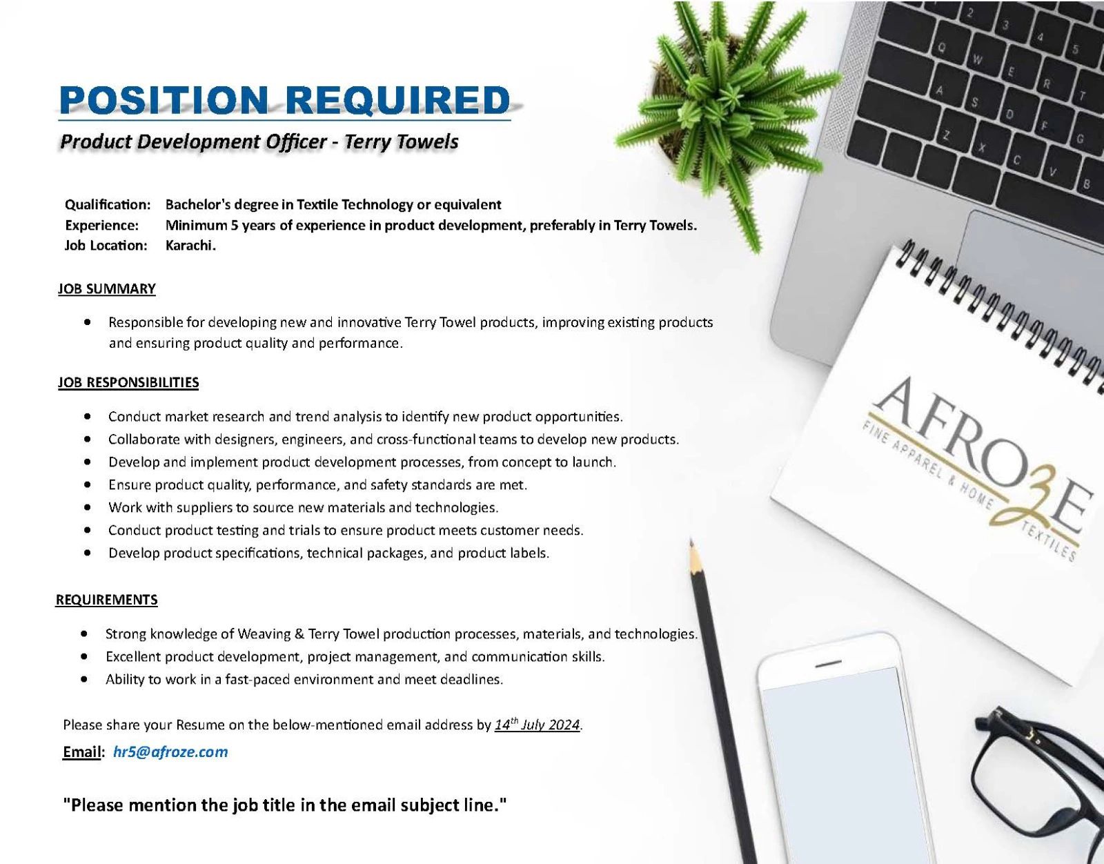 - Experience: Minimum 5 years in product development, preferably in Terry Towels