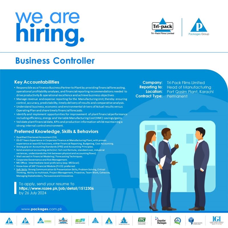 - Experience: 05-07 Years in Corporate Finance at a Manufacturing Plant, with proven experience in at least two functions such as Financial Reporting, Budgeting, and Cost Accounting
